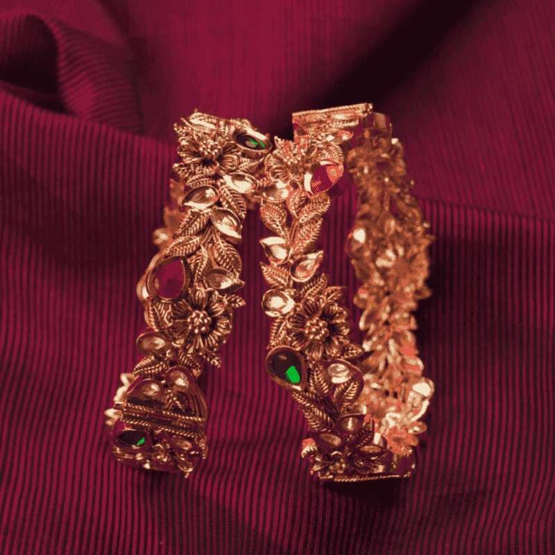 Intricate antique floral Kada with regal flair